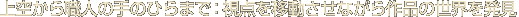 | 展示空間に一歩足を踏み入れると、空間があなたを見つけ、観覧中のあなたの動きに反応し、自動的に情報を差し出しながら、イスラム美術の発見へと誘います。また展示室では、イスラム美術の実際の作品を鑑賞し、さらにその作品との対話を続けながら、理解を深めるための様々な情報を得ることができます。 |
